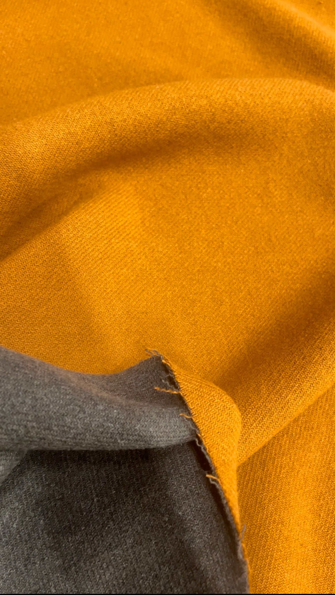 Our fantastically versatile double face wool gives you the opportunity to create superb reversible coats, capes, wraps, coatigans and much more! Made in a close twill weave with a snug, cosy brushed feel, the fire orange-toned wool is cleverly woven with the darkest grey on the other side. This excellent fabric has a very stable handle and a soft, yet dense drape. When cut, the edges will fray so binding or creating felled seams or some other suitable treatment for the edges will be necessary on reversible garments.