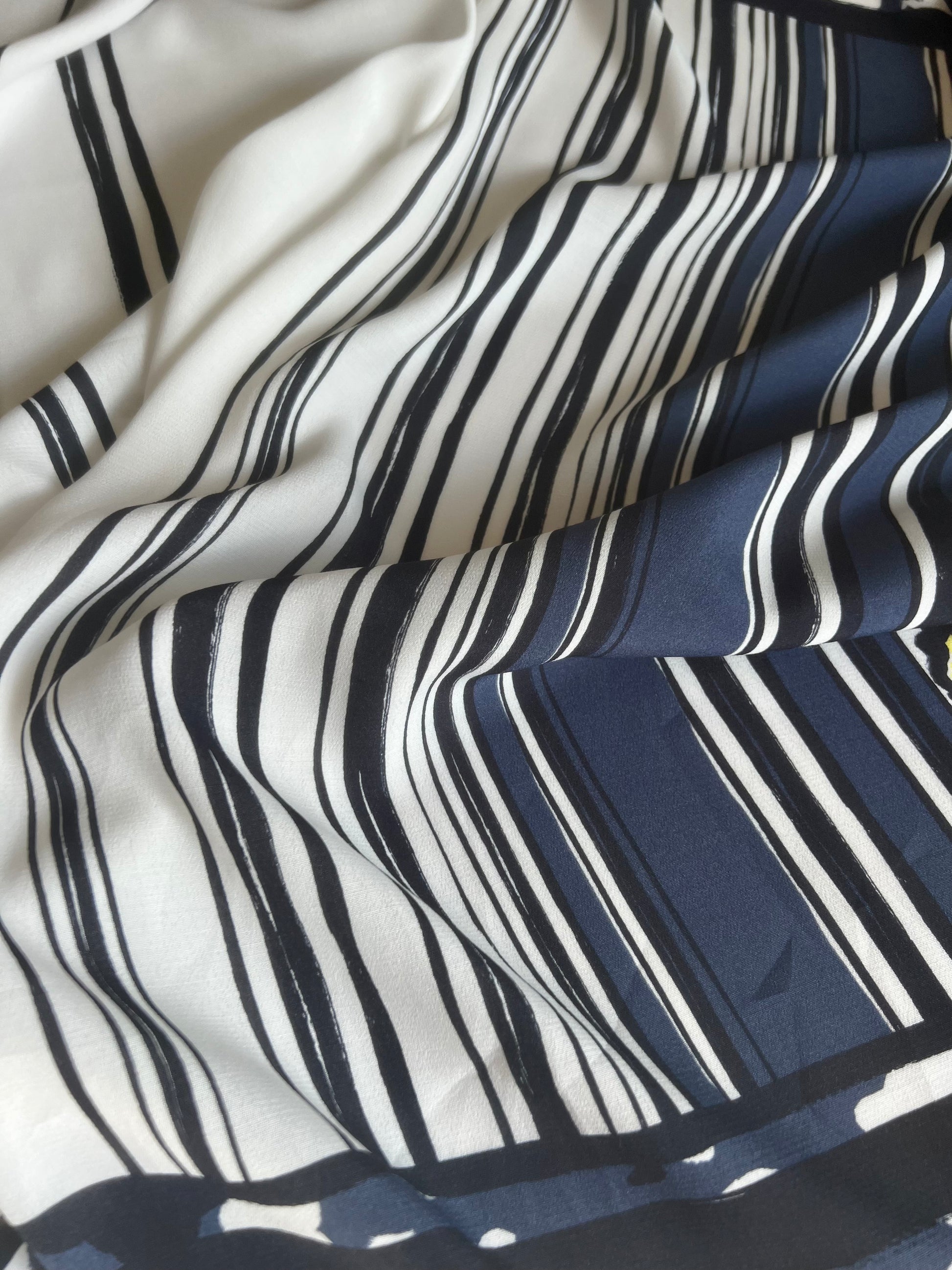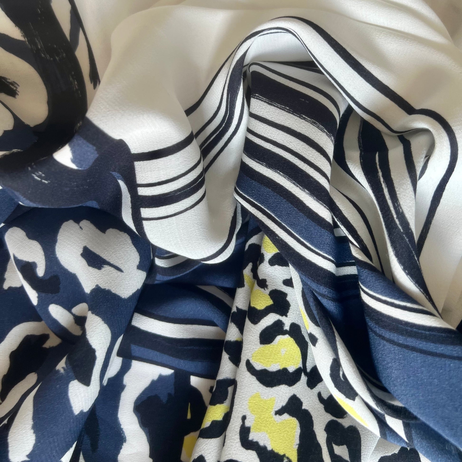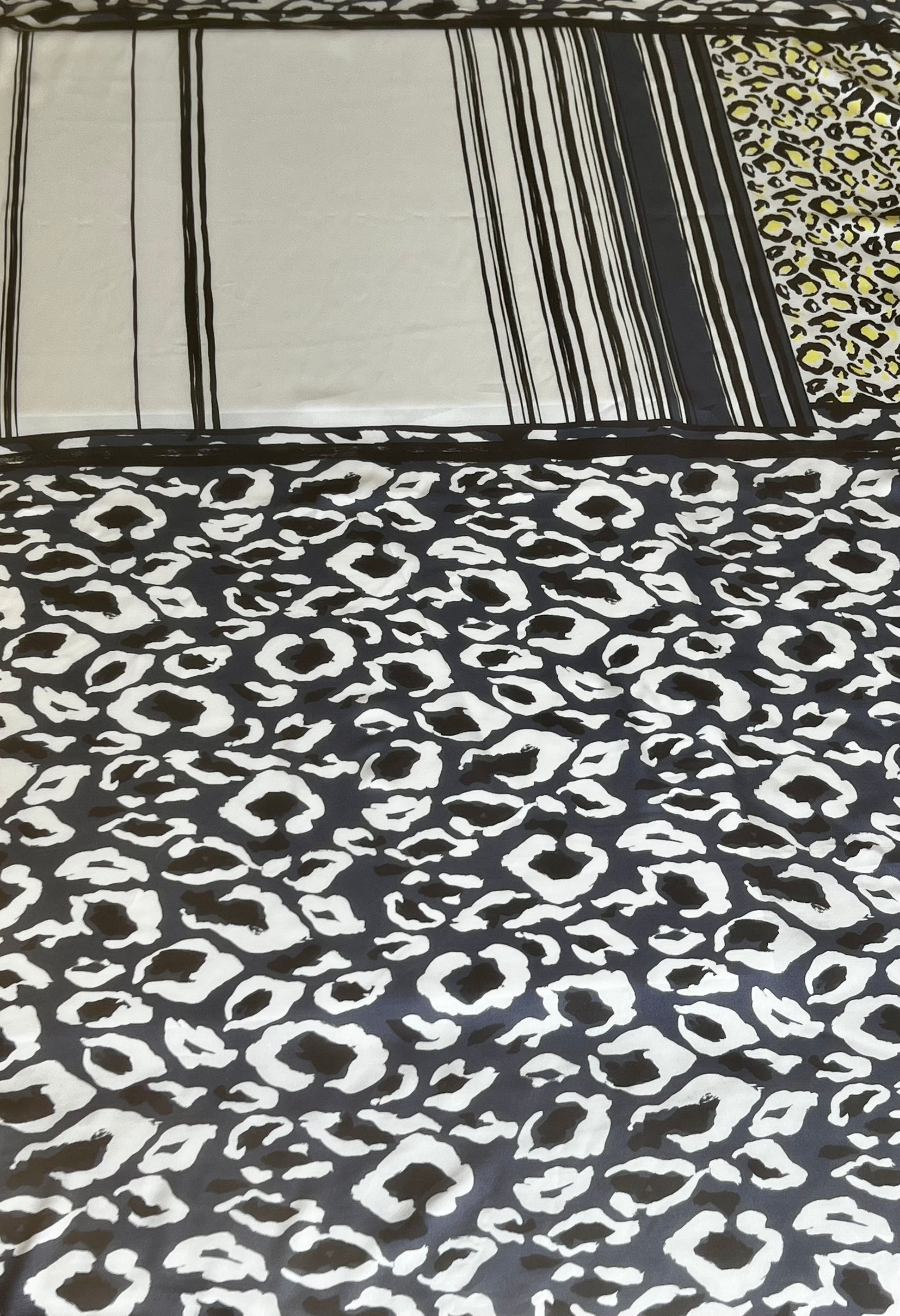 This fabric is a showstopper, light-weight, flowy and easy to sew with no difficulties. It brings into harmony animal prints and structured lines organically. Easily worn to a wedding or a fancy soiree, the wearer will instantly be turning heads with a great accompanying design, excited for this to be showcased.