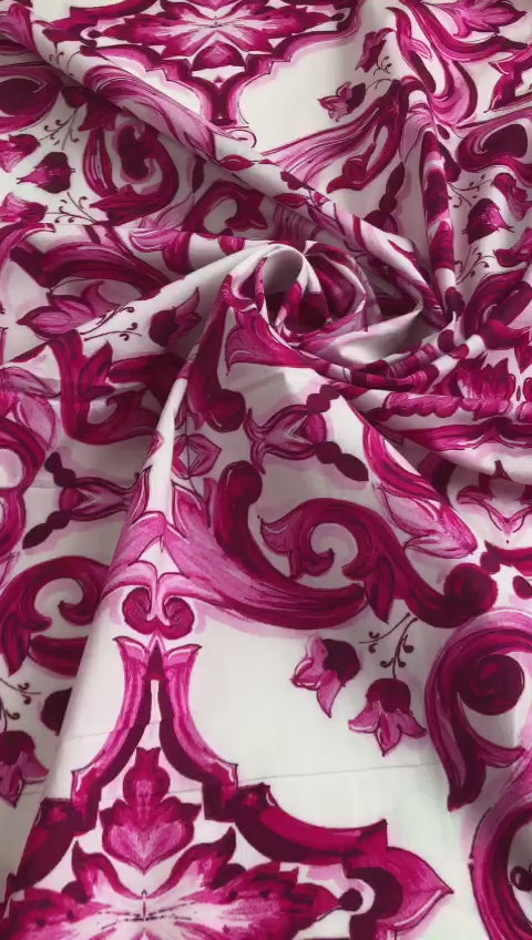 This is a lovely cotton poplin is a Dolce inspired majolica signature print . This will be ideal for shirts, light blazers, skirts, dresses and trousers.
