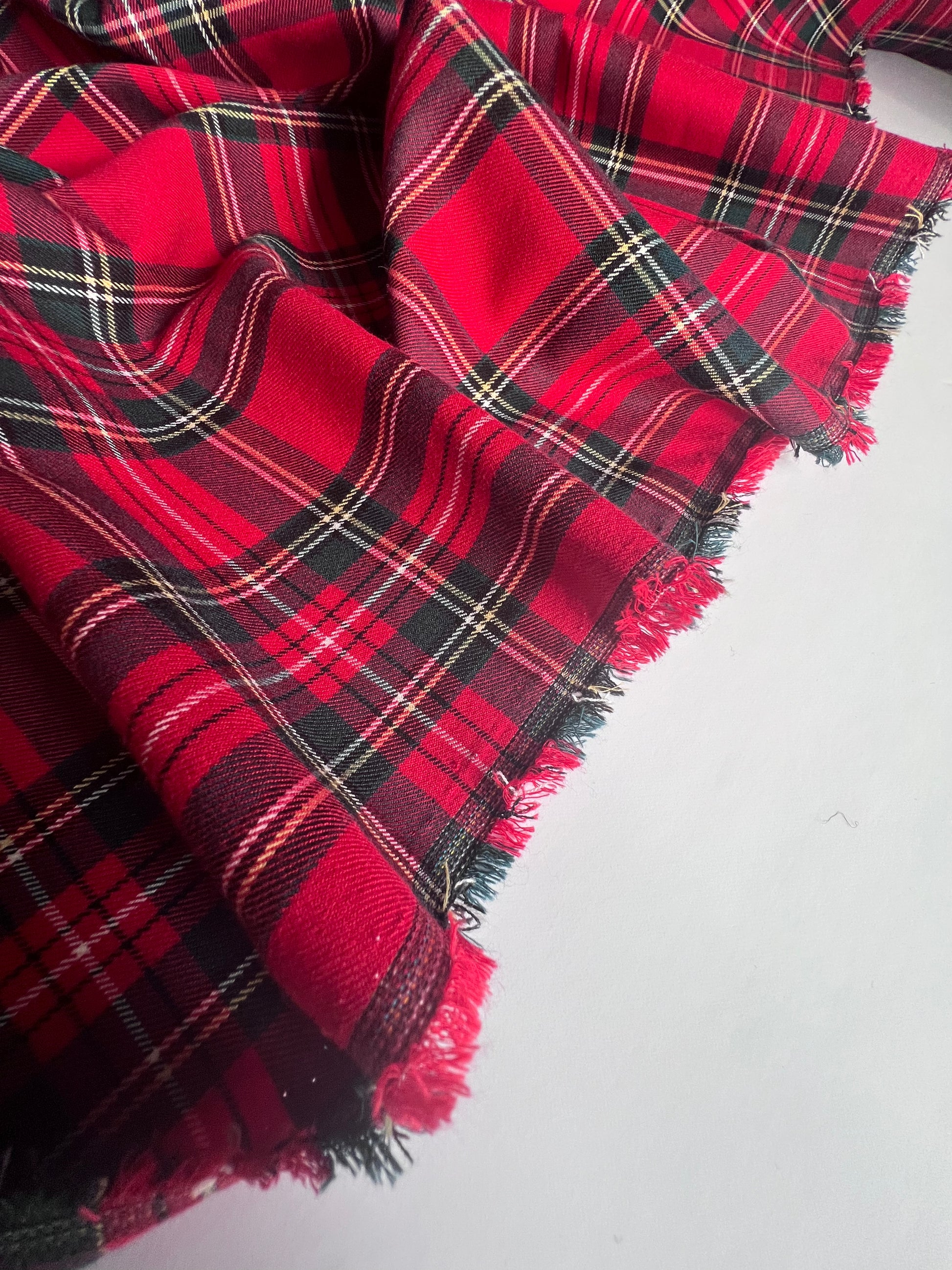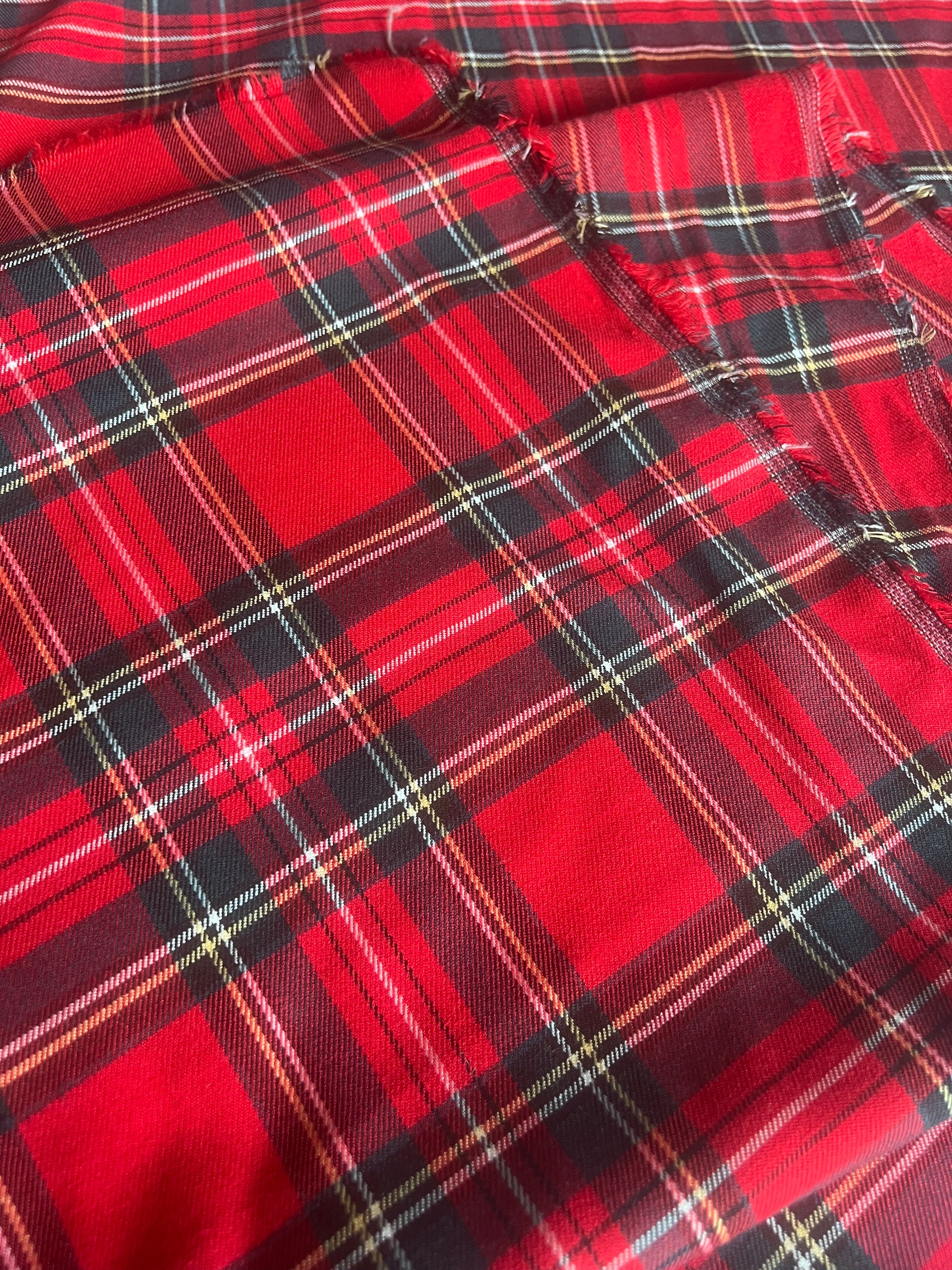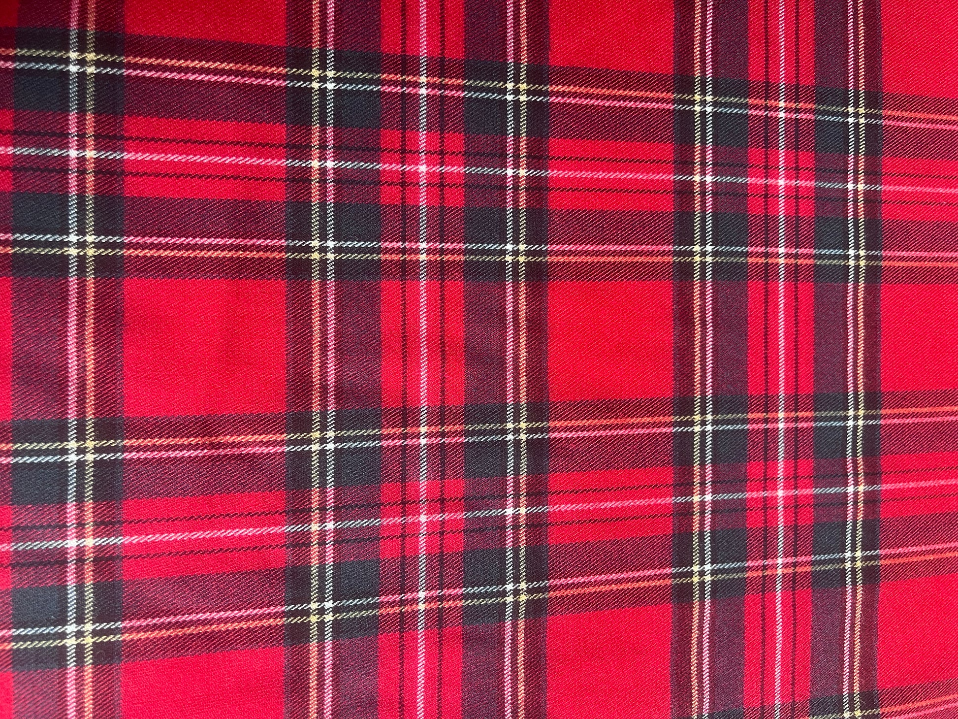 This is a mid weight study cotton tartan fabric, It's beautifully suited for a fitted suit jacket, trousers, a skirt and even a statement pinafore.