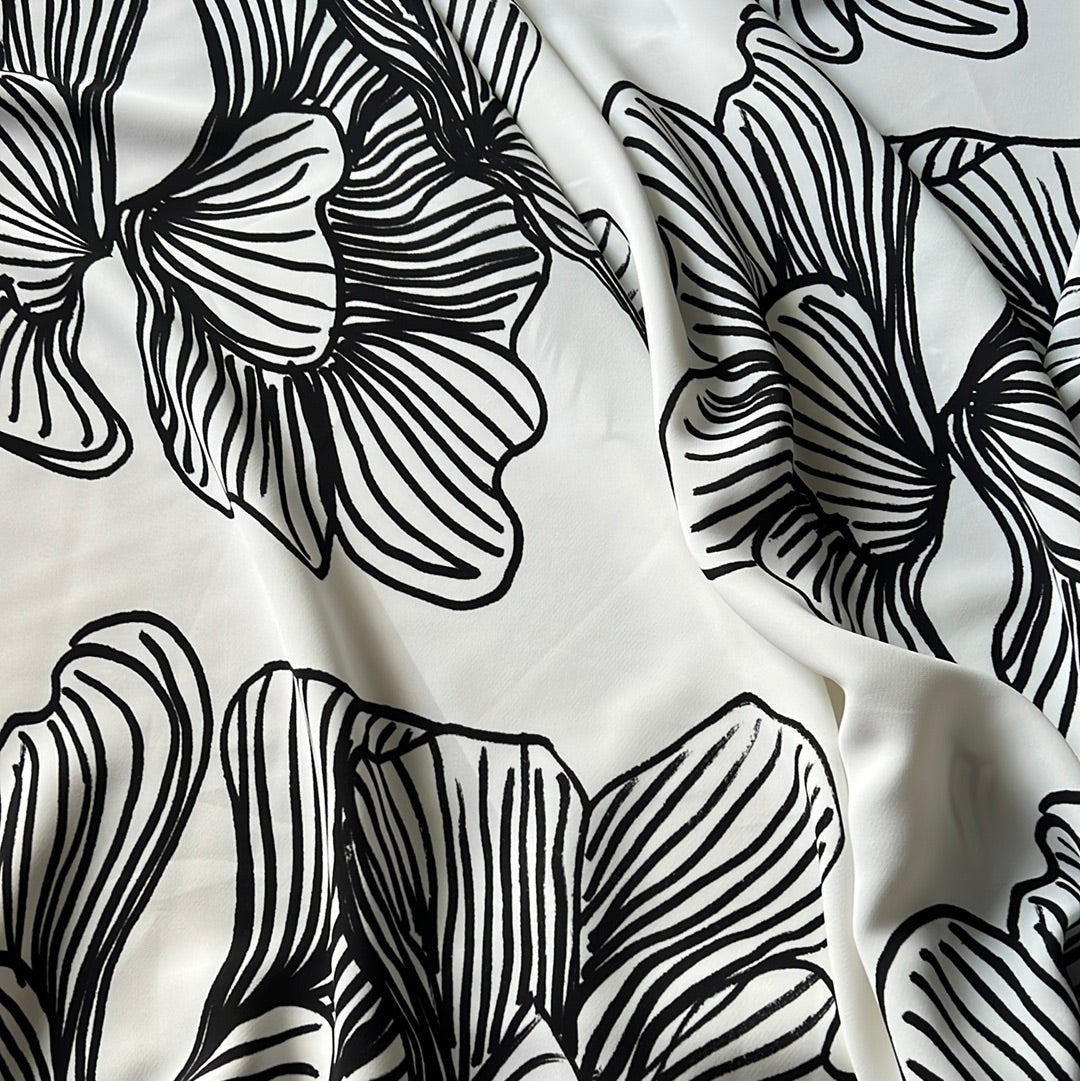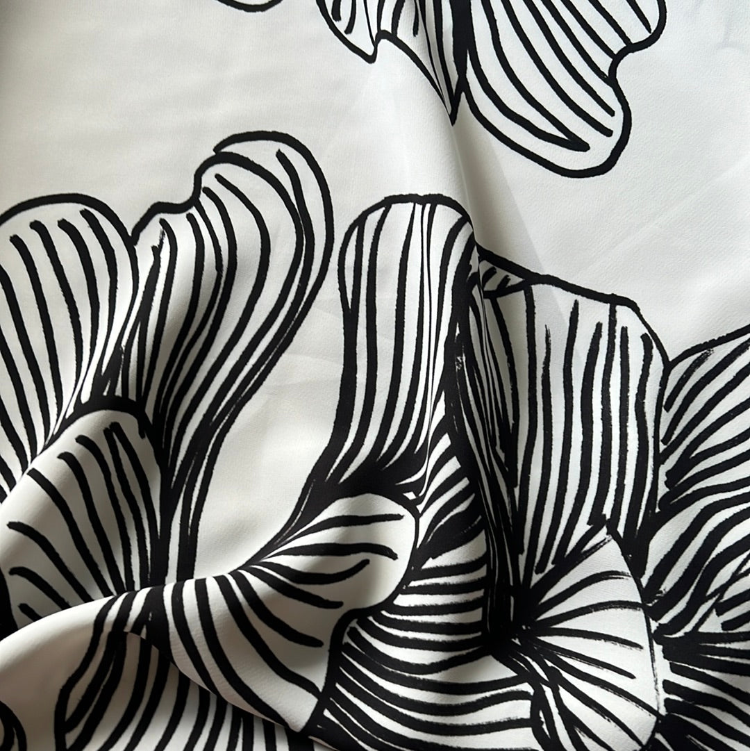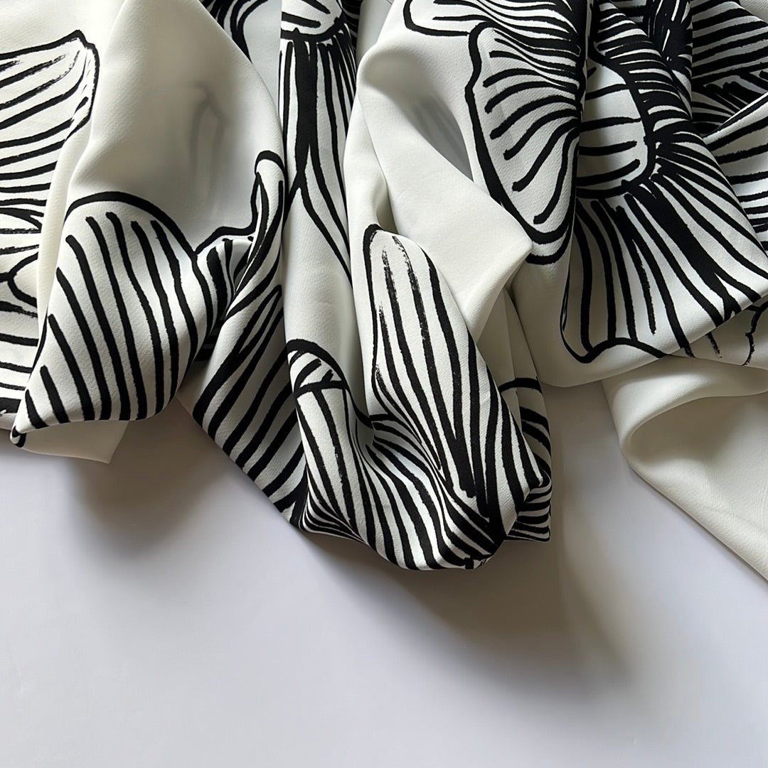 Our large flower print viscose crepe is a luxurious light weight fabric, ideal for sewing dresses and blouses because of its gorgeous drape and comfort. This fabric is ideal for mixing and matching with other fabrics to create a fab outfit .
