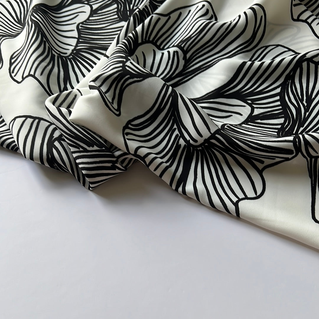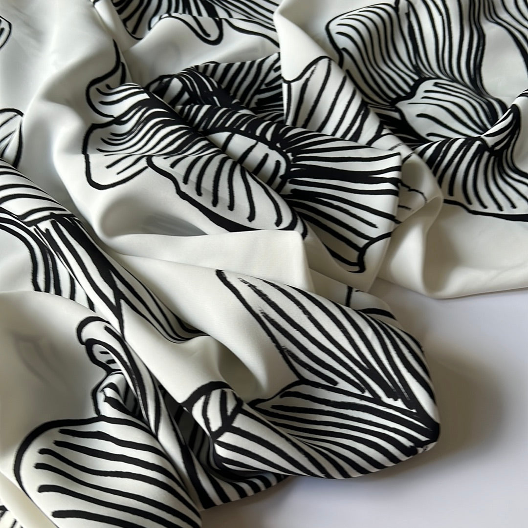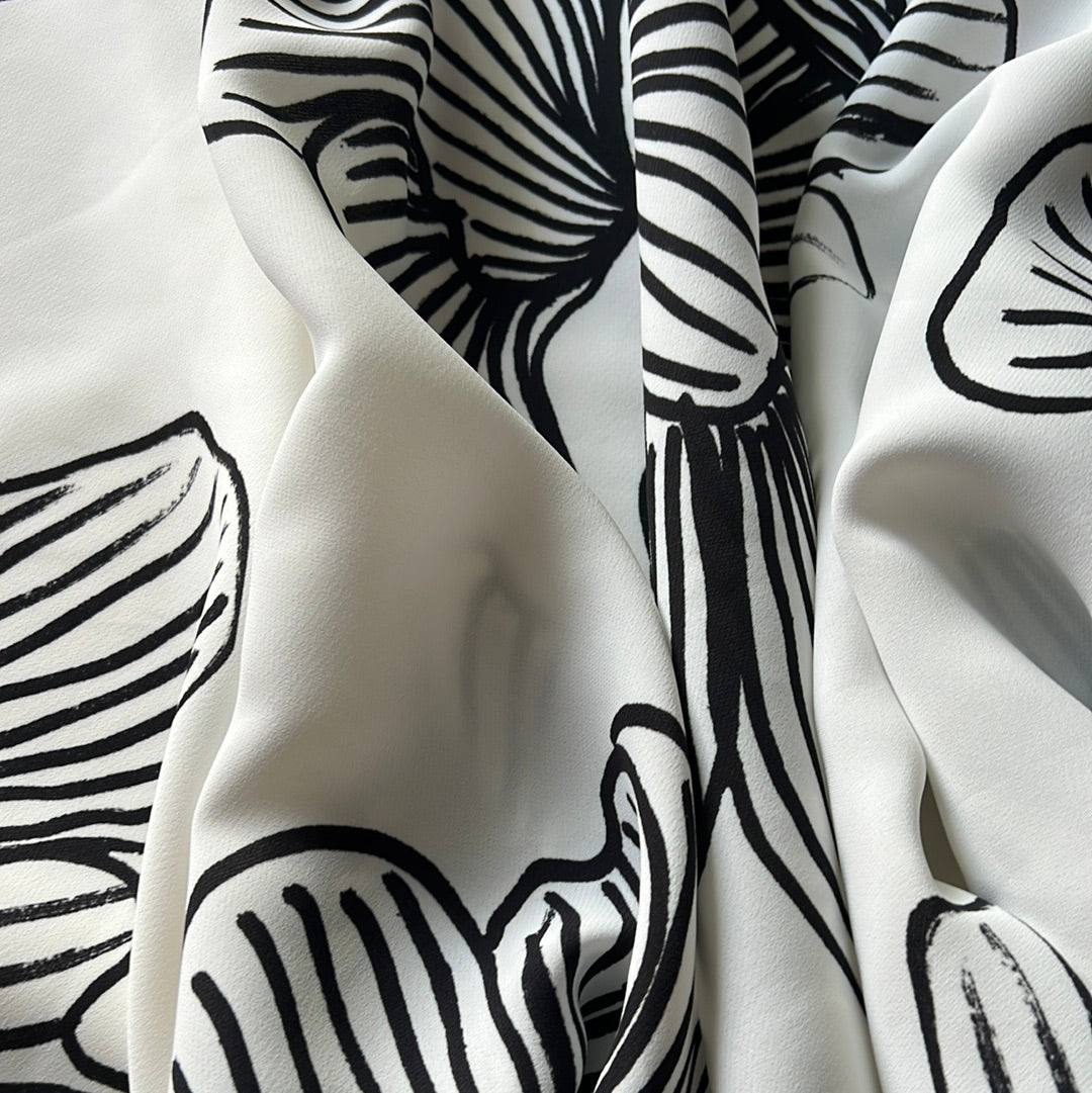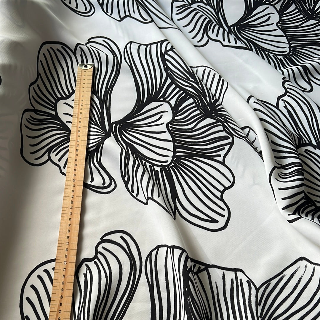Our large flower print viscose crepe is a luxurious light weight fabric, ideal for sewing dresses and blouses because of its gorgeous drape and comfort. This fabric is ideal for mixing and matching with other fabrics to create a fab outfit .